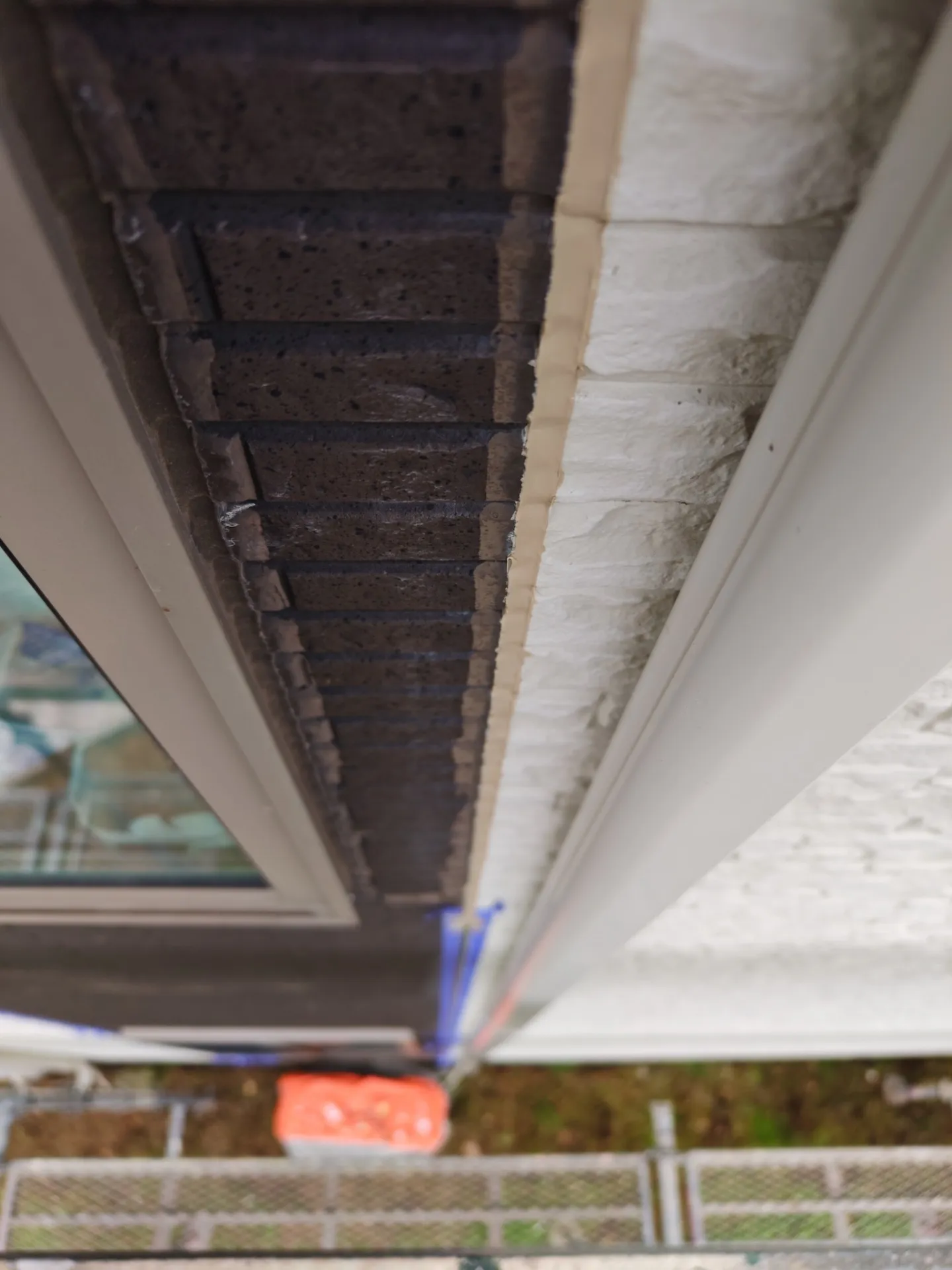 【ヘラでの均し】 打ち込んだシーリング材をヘラで均一にならし、密着させます。