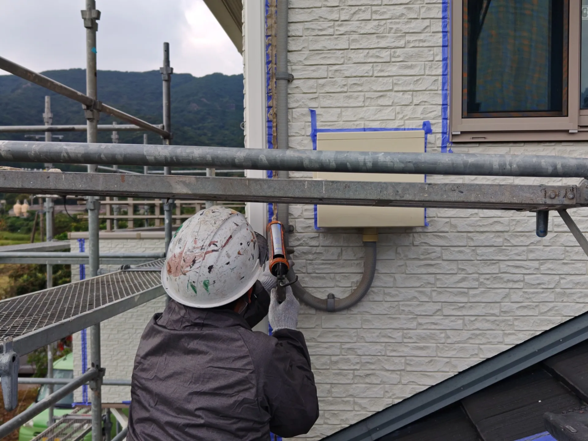 【シーリング材の充填】 専用のガンを使って、隙間に新しいシーリング材をたっぷりと充填していきます。