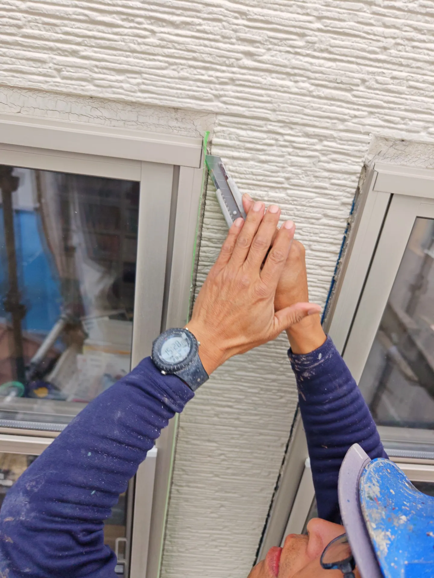カッターを使って劣化した古いコーキング材をきれいに撤去していきます。