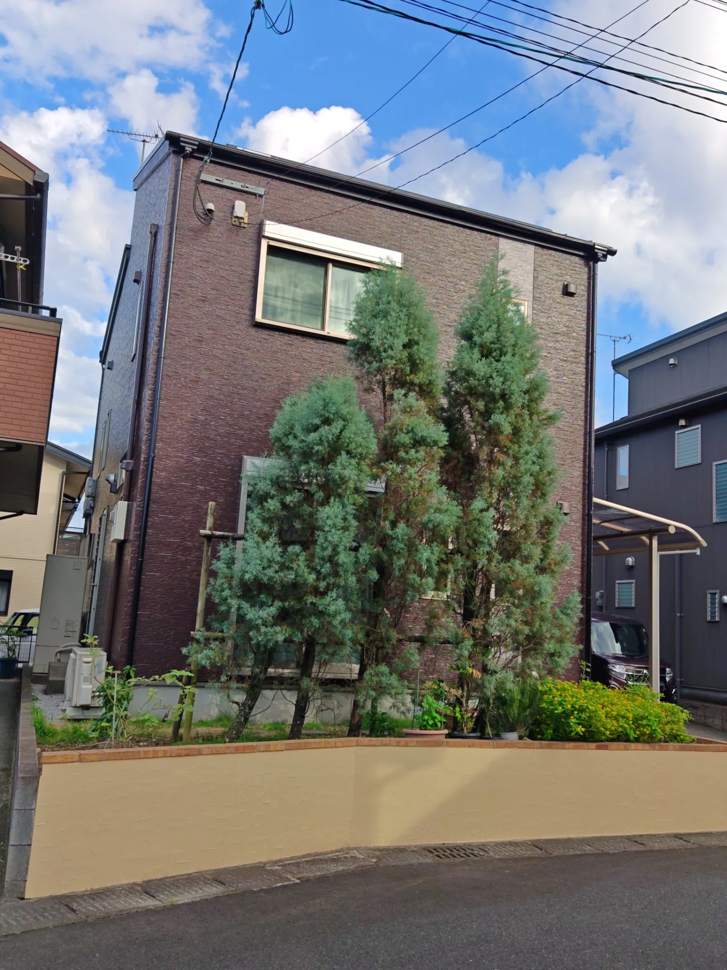 外構の塀も明るいクリームイエローで塗装し、お庭の緑がより鮮やかに見える仕上がりに🎨