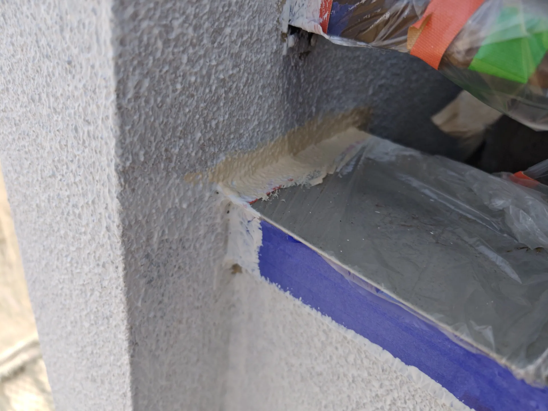 飛散防止のシートで見えにくいですが、中では職人が黙々と作業を進めています。