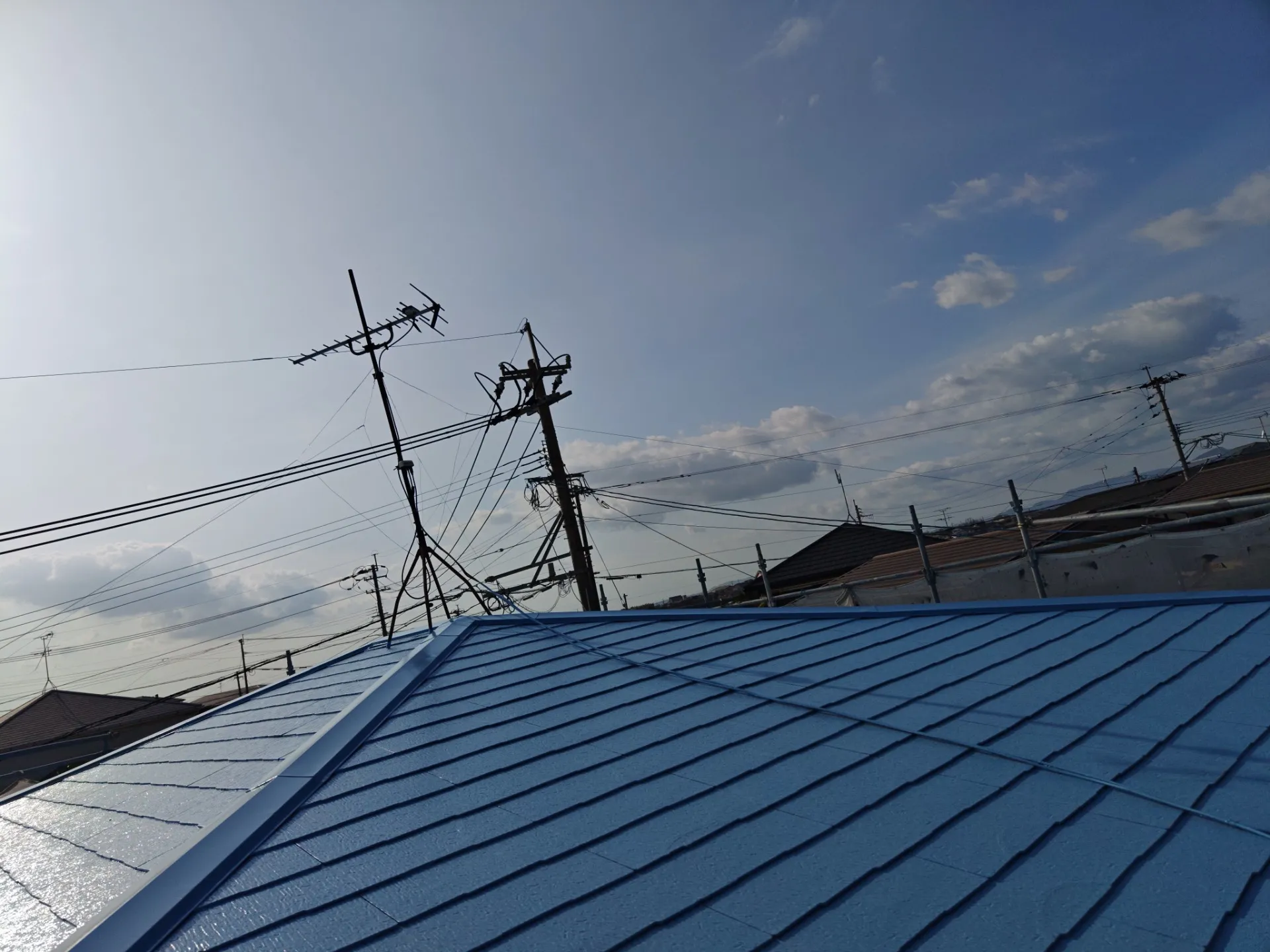 ✅ スカイブルーの上塗り: 遮熱効果も期待できる美しい仕上げ【遮熱塗料】