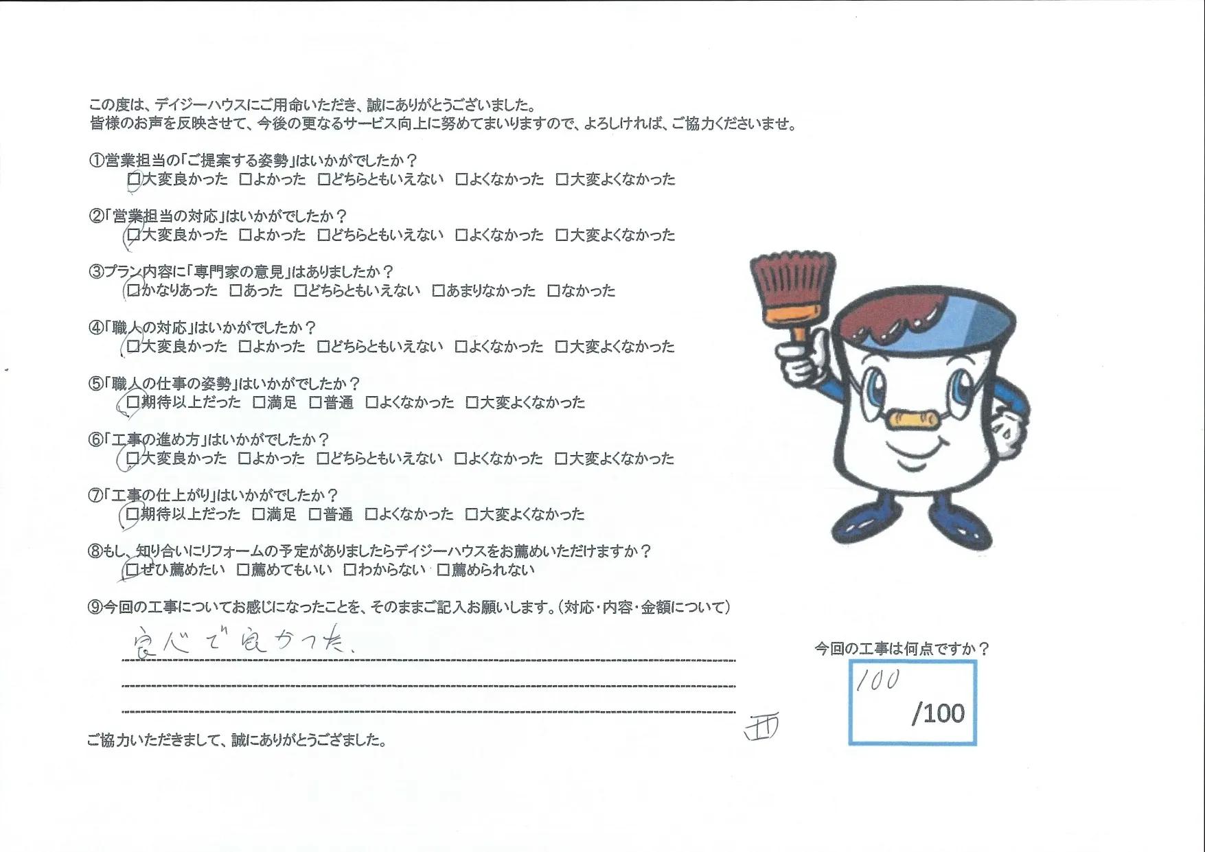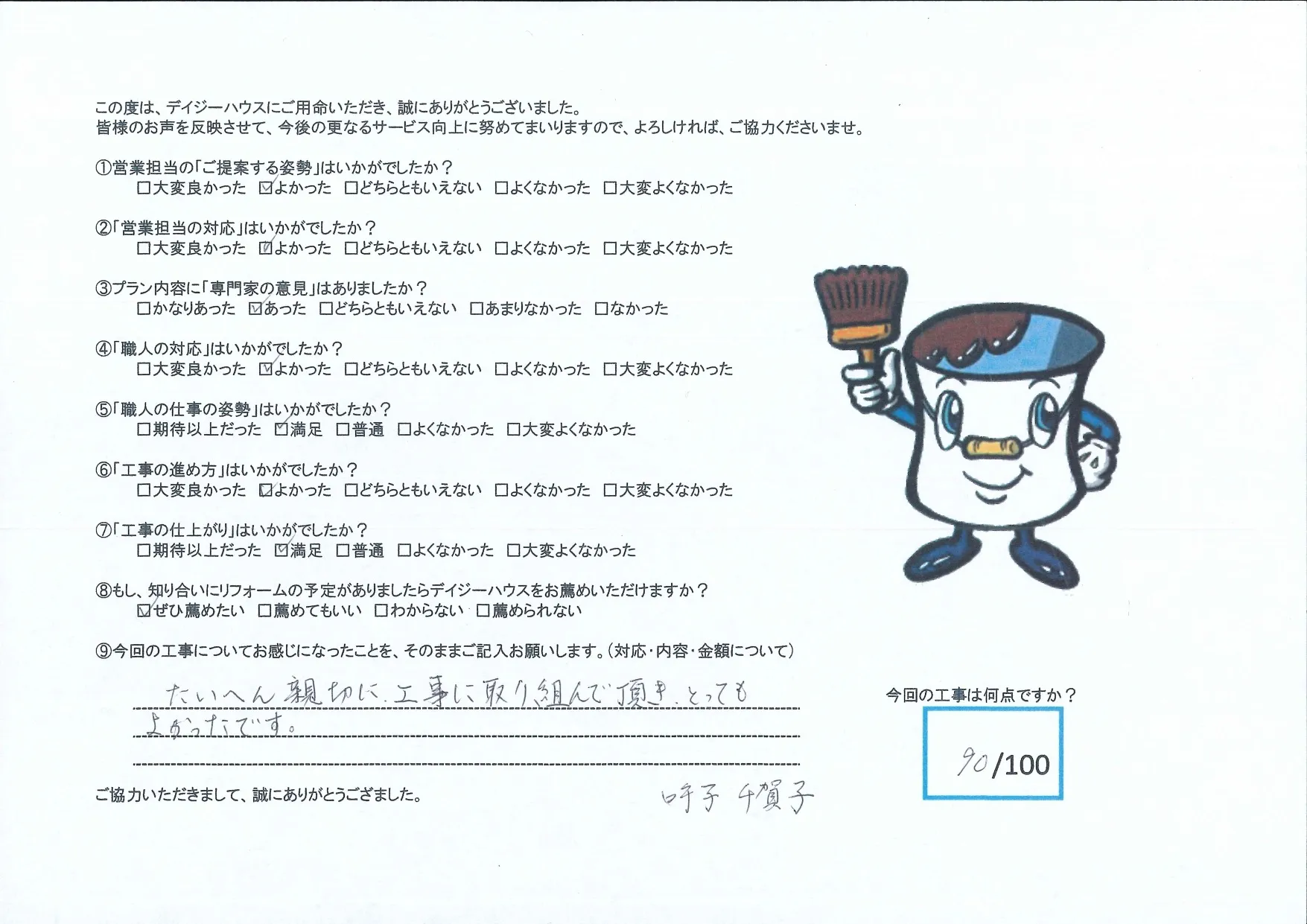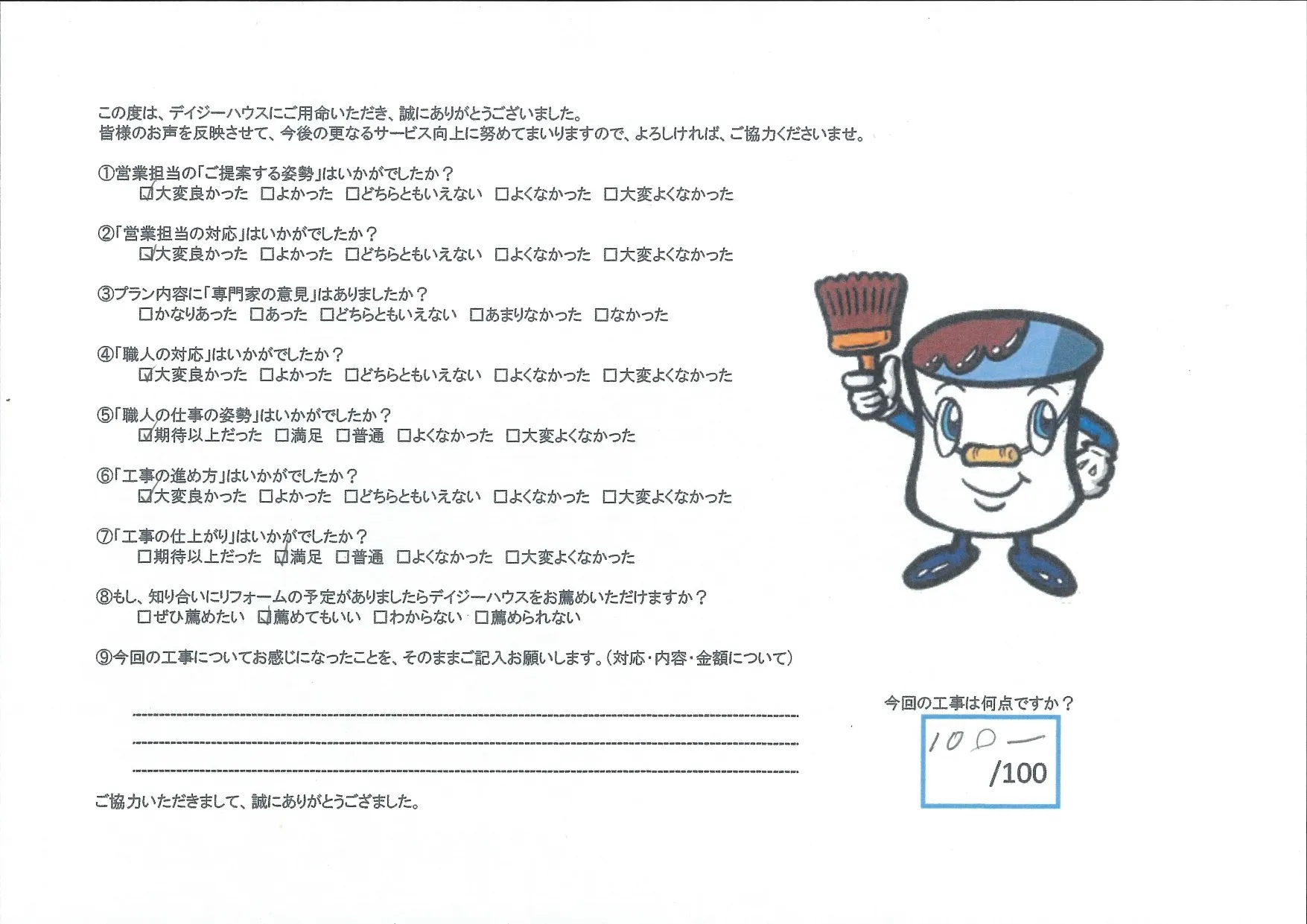 多くのお客様に安心してご依頼いただきたいという想いから、実際に施工されたお客様からいただいた声をご紹介しています。施工の仕上がりや職人の対応など、率直な感想をお届けすることで、ご依頼を検討されている方々が参考にしていただけるはずです。「頼んでよかった」「想像以上の仕上がりになった」などの嬉しいをお言葉をいただけるよう、全力で取り組んでまいります。
